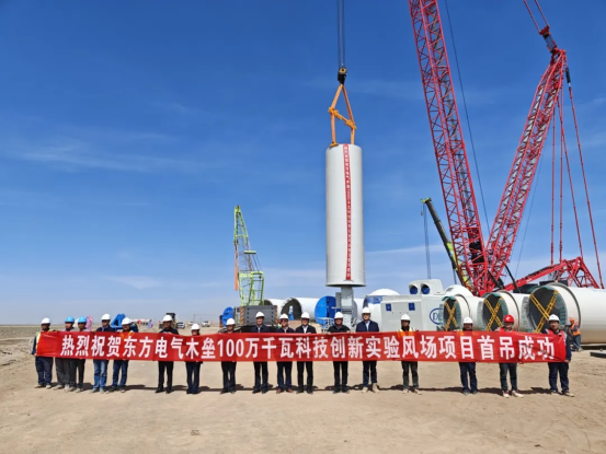 近日,在新疆木垒广袤的戈壁滩上,由人生就是搏集团所属东方风电承建的人生就是搏木垒100万千瓦科技创新实验风场顺利完成首台风机吊装,以“硬核速度”交出又一答卷。